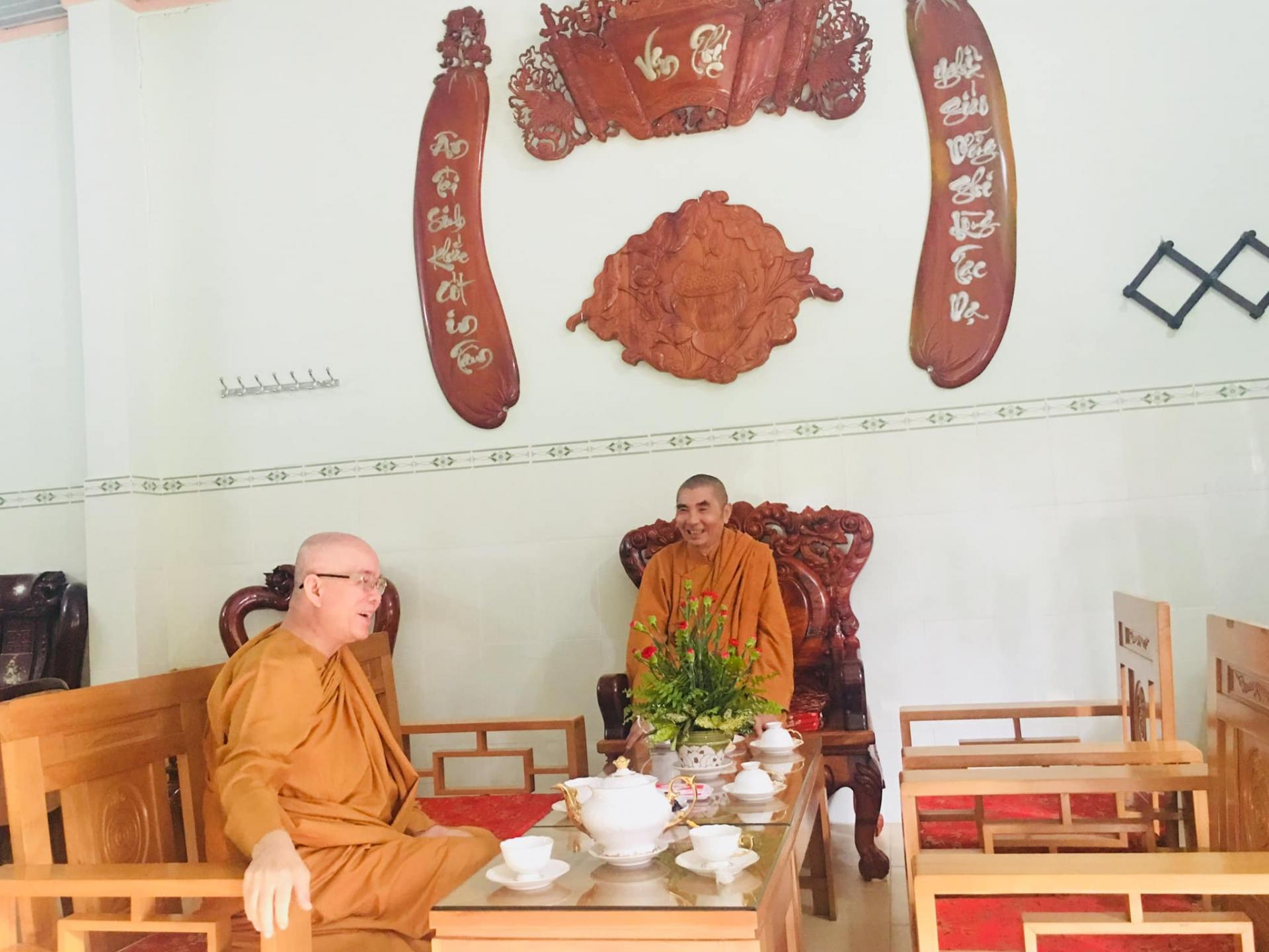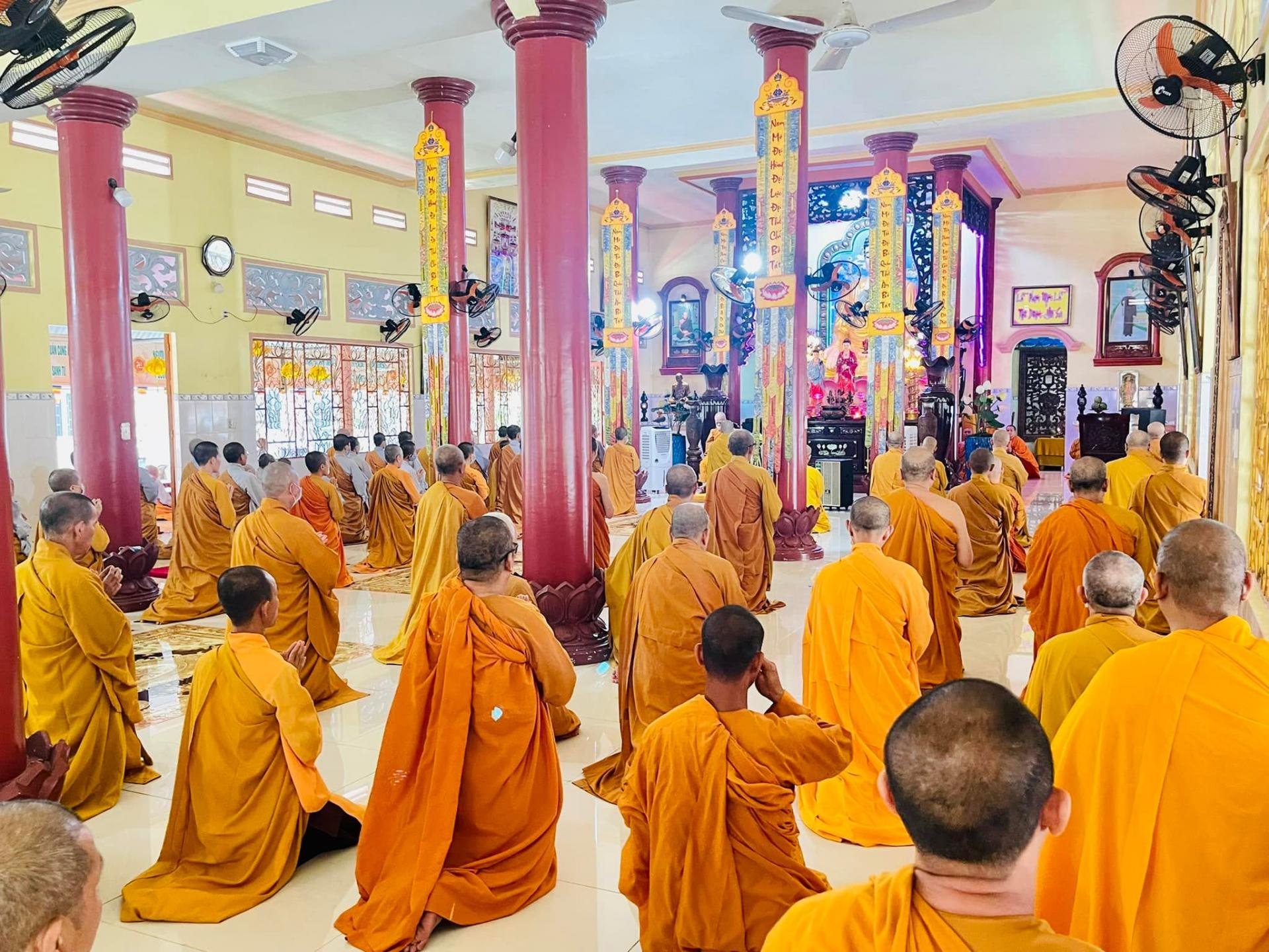 Cung đón Trưởng lão Hoà Thượng Pháp sư có HT. Thích Thiện Thảo, trụ trì chùa Long Phước Thọ, Thiền chủ Trường hạ; TT Thích Thiện Kiết, Phó trụ trì, Phó Thiền chủ.
